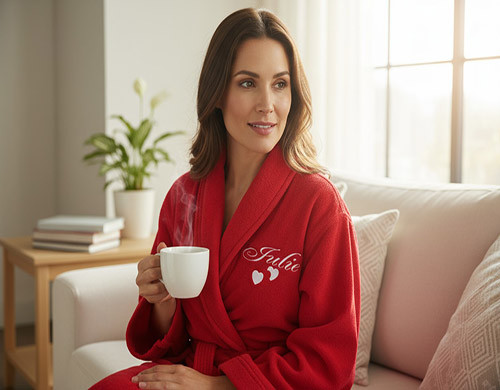 Excellente idée de cadeau !!! Peignoir personnalisé nid d'abeille 100% coton, col kimono Broderie texte offerte coté coeur. Deux poches 220g Broderie personnalisée coté cœur ( Prénom, Initiales, Monogramme ou Texte... Excellente idée de cadeau !!! Peignoir...