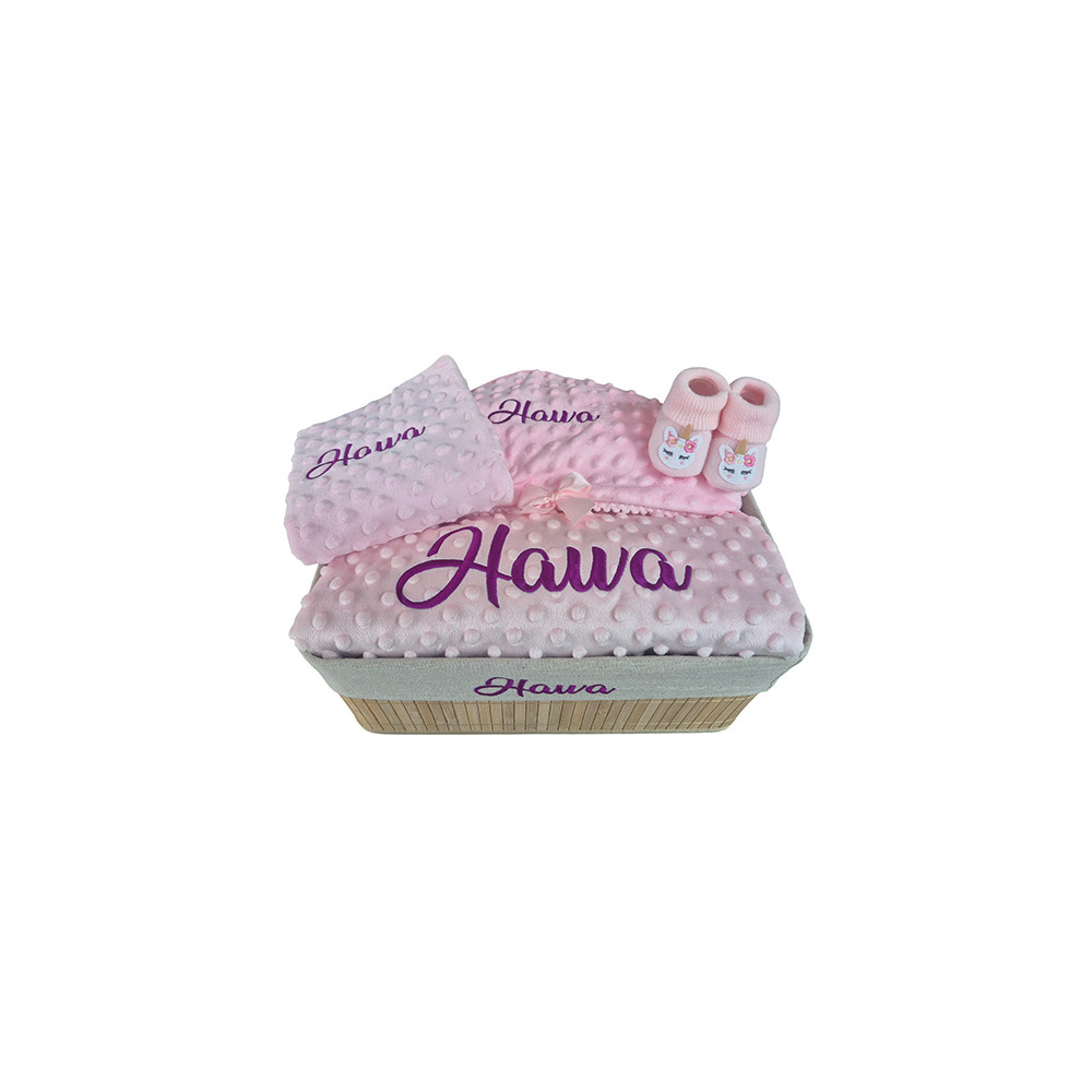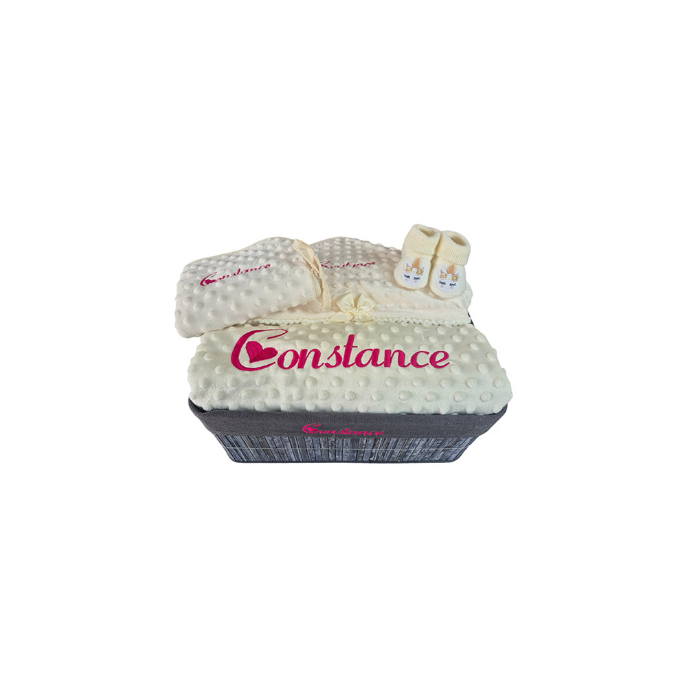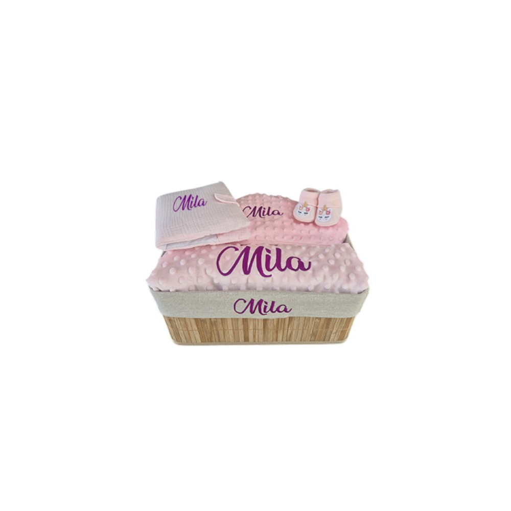 Une corbeille de naissance personnalisée au prénom de bébé