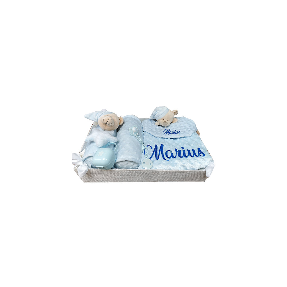 Une corbeille de naissance personnalisé au prénom de bébé