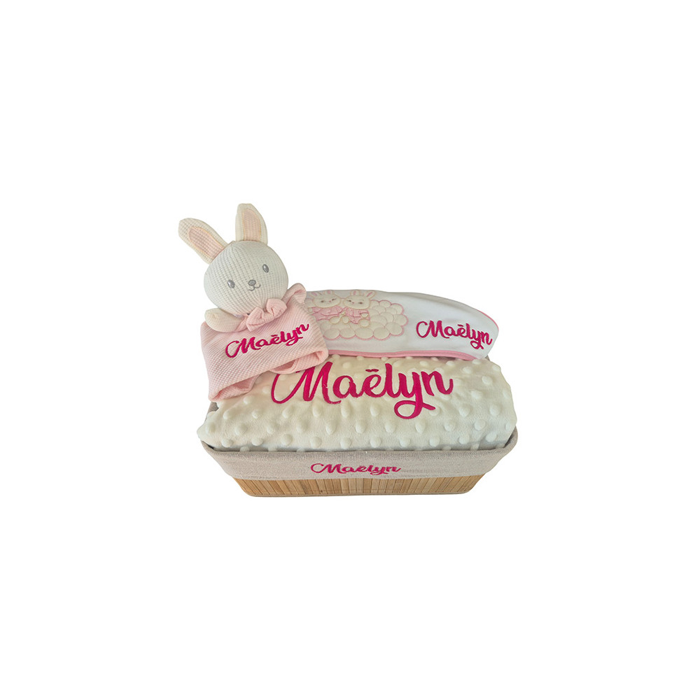 Une corbeille de naissance personnalisé au prénom de bébé