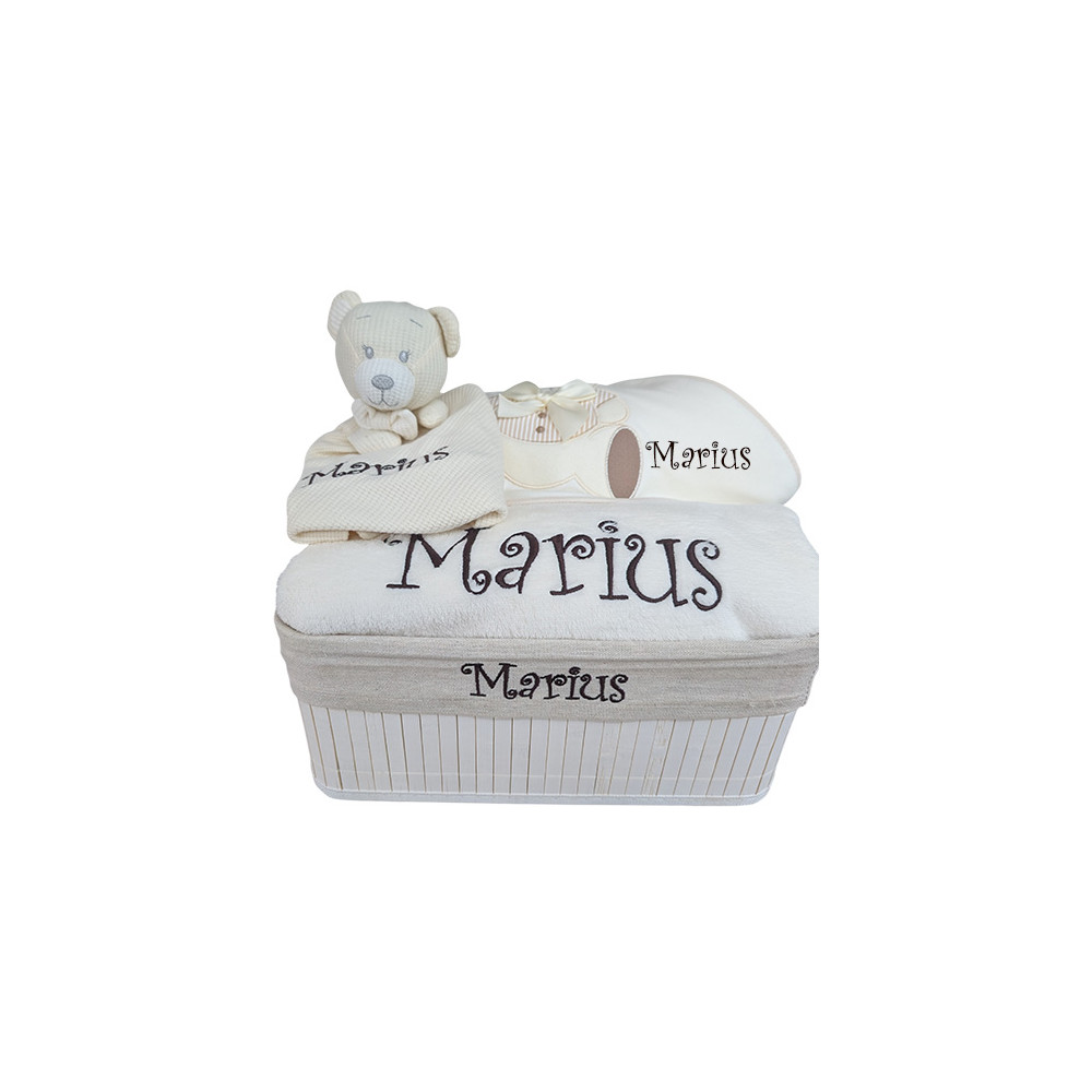 Une corbeille de naissance personnalisé au prénom de bébé