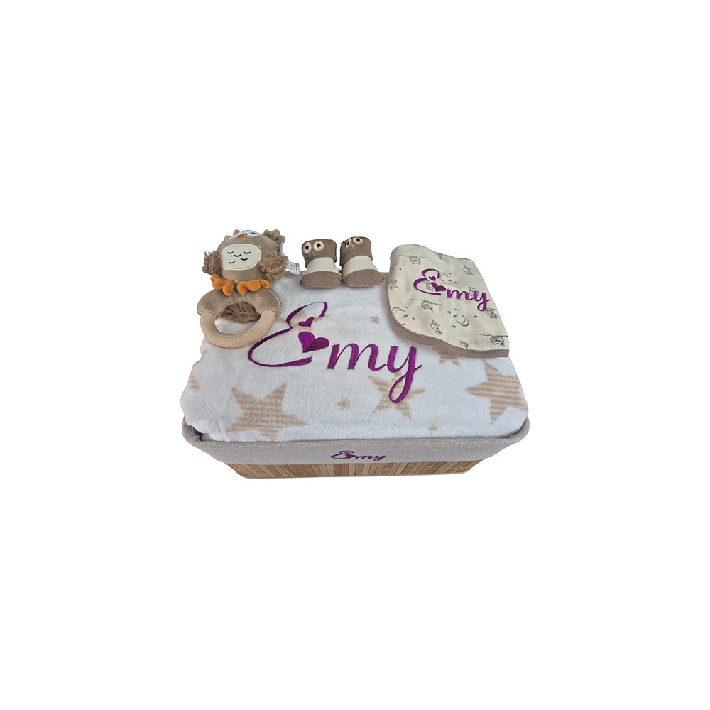 Une corbeille de naissance personnalisée au prénom de bébé