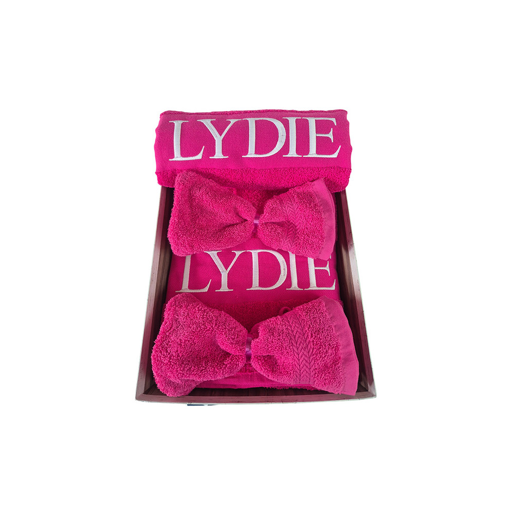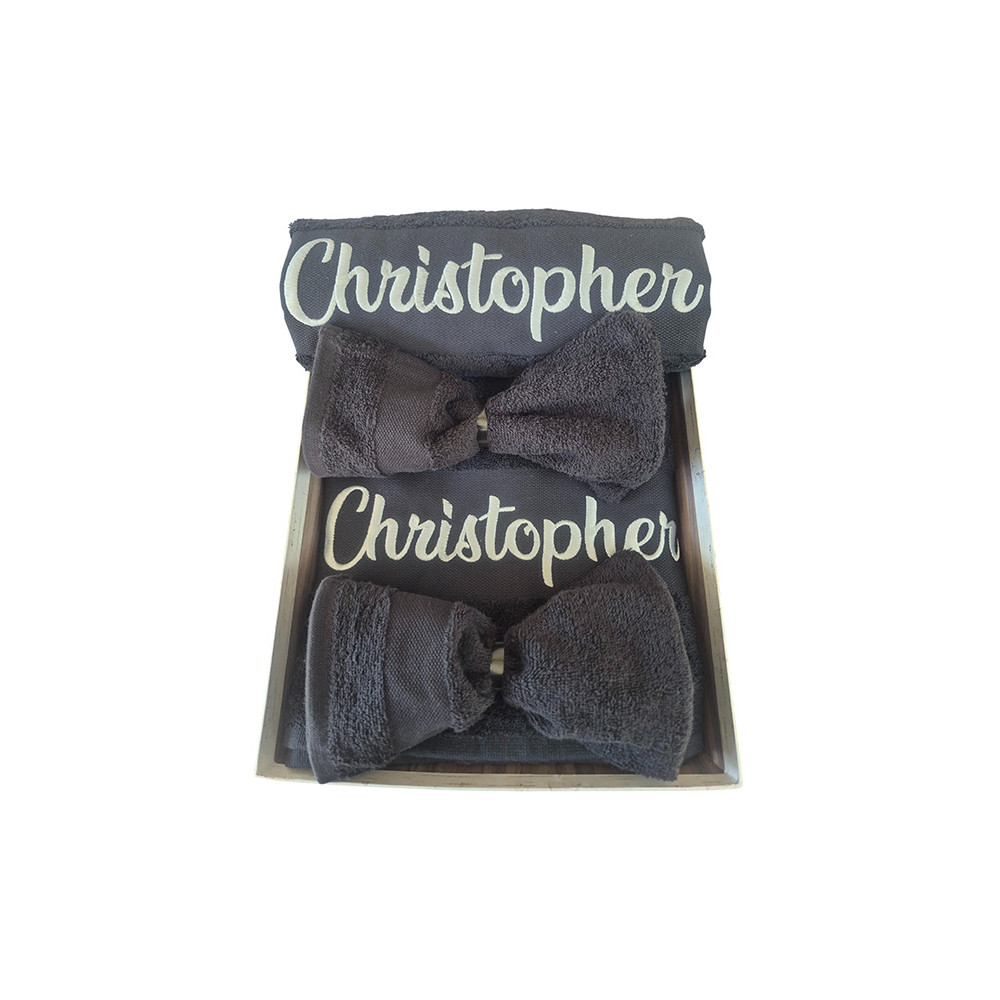 Broderie personnalisée sur chaque le drap de bain et la la serviette de bain.
